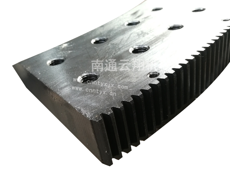 說明:此款齒條外型尺寸Φ1060×30,選用優(yōu)質(zhì)的鍛件材料。采用先進(jìn)的銑齒工藝,齒面高頻后使產(chǎn)品更耐磨,表面做了發(fā)黑處理防銹。